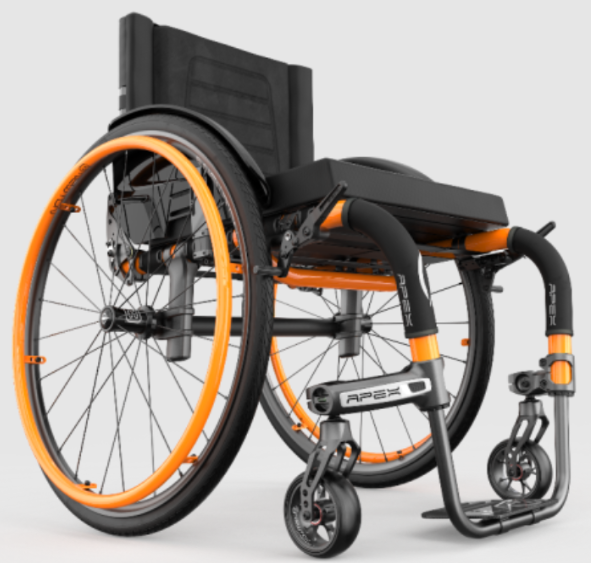 • The lightest wheelchair in its class with a transport weight of just 9.8 lb* (4.5 kg), the APEX obliterates every preconceived idea about rigid chairs. It’s fully configurable to meet the needs of just about every client and performs like a carbon fiber purebred.