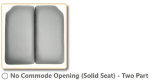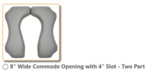 - 17” x 17” hourglass shaped hand-wrapped Naugahyde commode cushion for increased hygiene access.